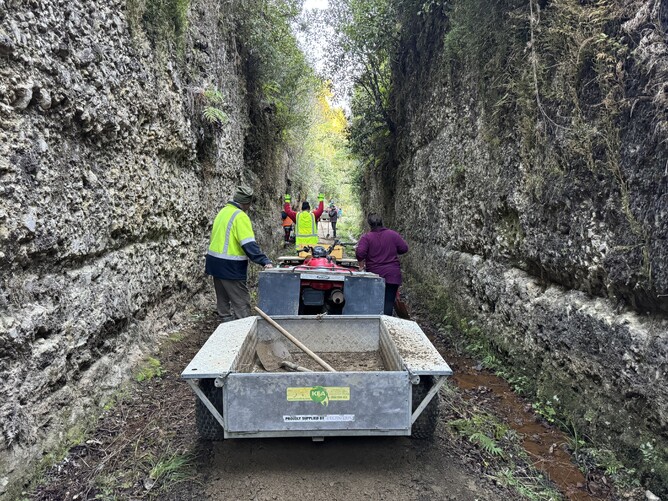 Managed by the Department of Conservation, the trail has recently received much-needed attention to its ride surface. Led by the Friends of Timber Trail, a group of fifteen dedicated volunteers with an average age well into their seventies, set out last week to make substantial improvements.