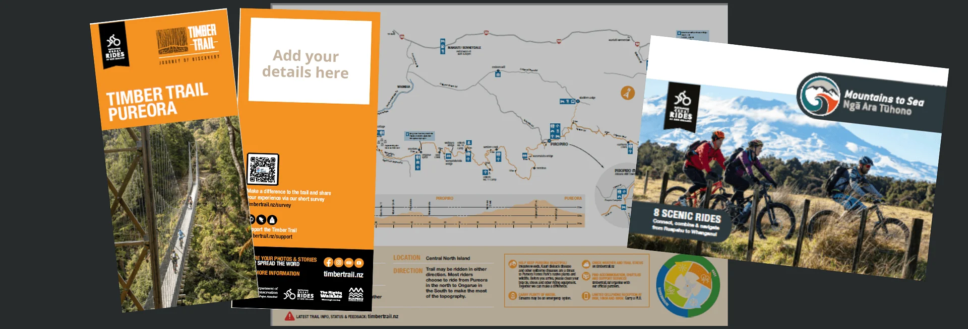 Supporting our Official Partners to ensure customers choose the right ride, the right, bike and the right time to ride our trails is part of what we do!. Our trail brochures are held in bulk across our rohe, and to help us focus on delivering a great experience, we encourage you to order what you need, and then either pick up, or we will deliver to you (either as we come through the area, or occasionally by courier).